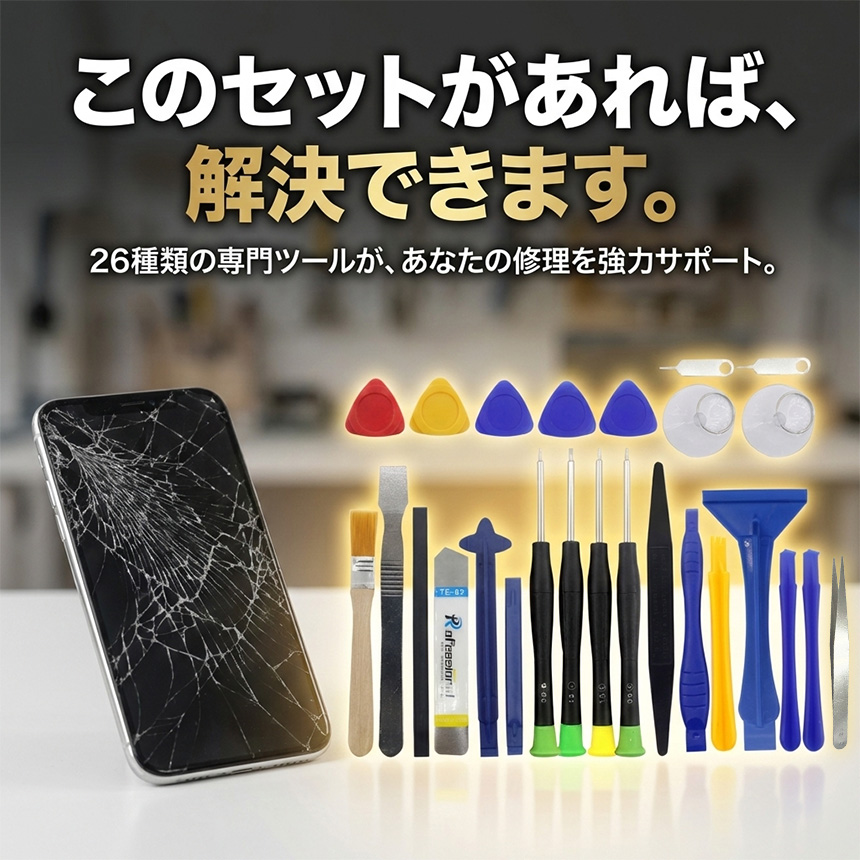 そんなあなたのための、プロ仕様スマホ修理コンプリート26点h01-8aの登場です。