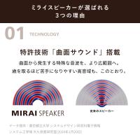 ■特許技術「曲面サウンド」搭載で聞こえにくさを解消 ミライスピーカーは、「蓄音機の出す音は難聴者に聞こえやすい音だ」という発見を元に開発された曲面形状のスピーカーです。距離が離れた場所でも音量が減衰しないエネルギー波の高い音を出すことができ、聞こえにくさを解消するスピーカーです。