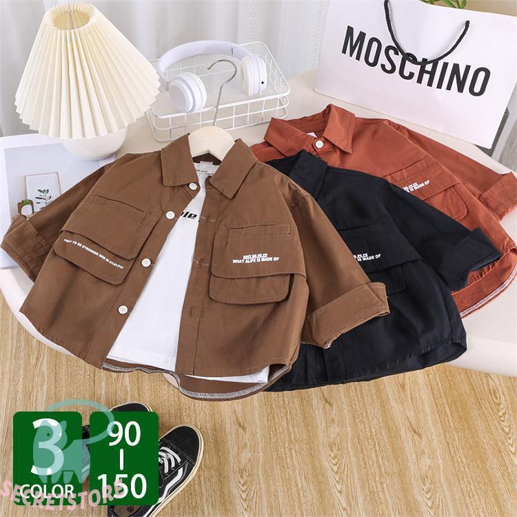 キッズ シャツ 長袖 ス カジュアルシャツ アウター かわいい おしゃれ シンプル あわせやすい 動きやすい 着やすい ノーカラー