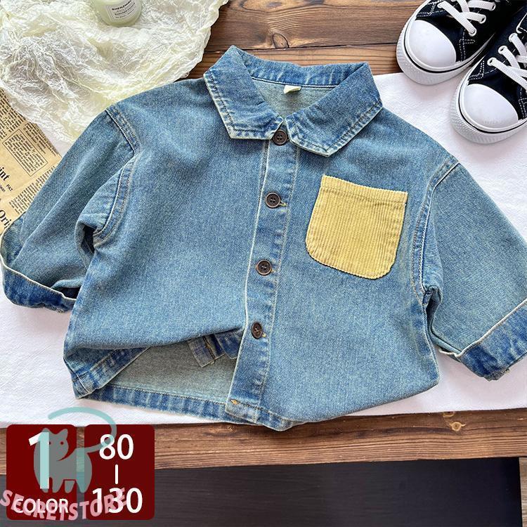 キッズ アウター 長袖 デニム ス シンプル 襟付き シャツ風 カジュアル おしゃれ ゆったり 動きやすい あわせやすい 着やすい ワンポイント