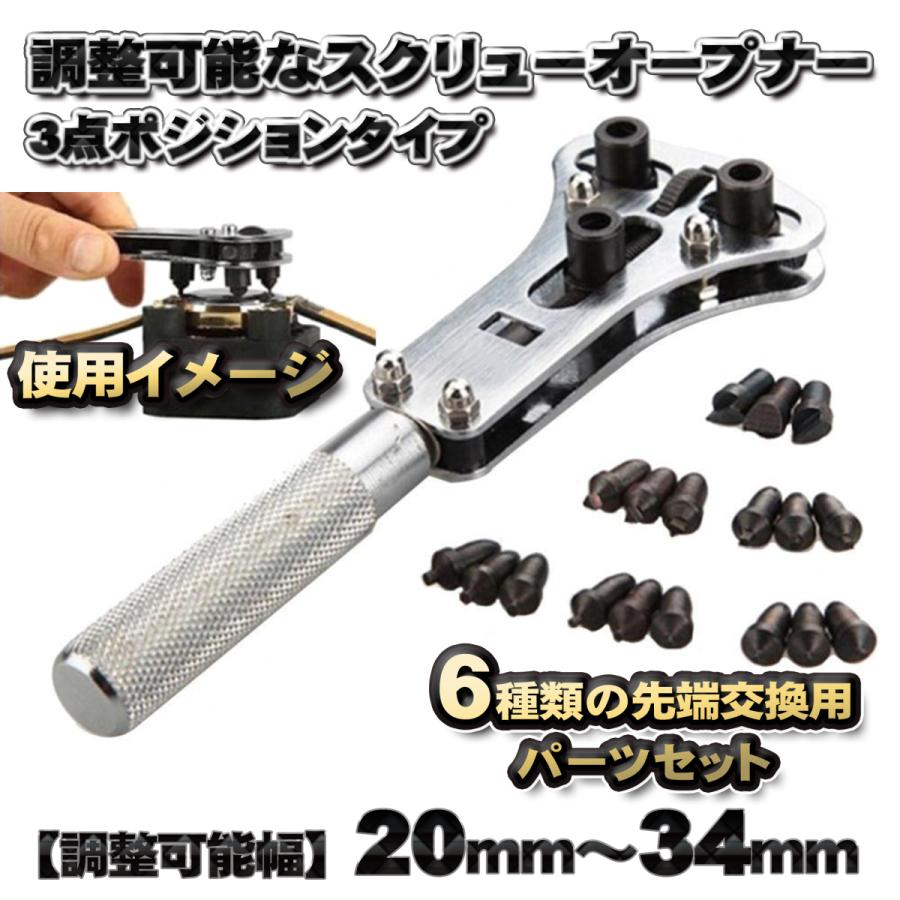 時計バックケースカバーオープナー 取り外しツール バッテリー交換用 6種類の先端交換用 パーツセット 調整可能幅20〜34mm