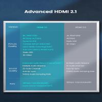 8K@120Hz、4K@120Hz、UHD、FHD、3D、イーサネット、オーディオリターンチャンネル、HDR 4:4カラーフォーマット、48ビット/px 色深度をサポート。 1080pと同等の4倍のクリア。