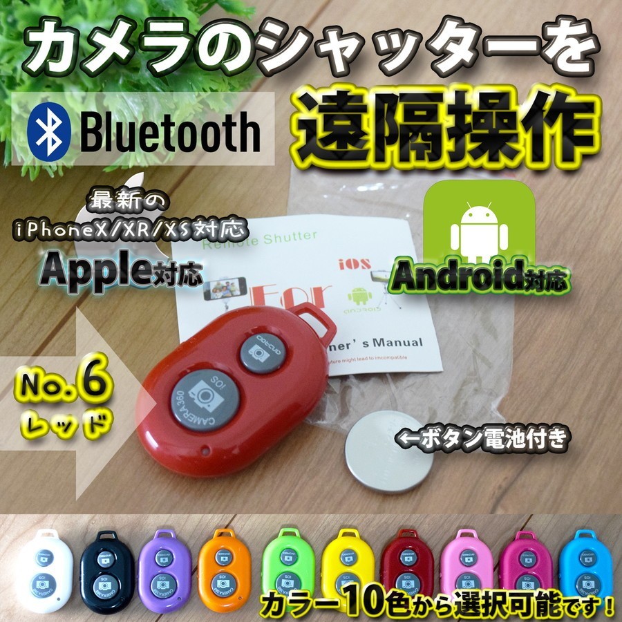 【No.6レッド】 Bluetooth スマホ リモートシャッター ブラック 遠隔操作出来るリモコン ボタン電池セット マニュアル付き