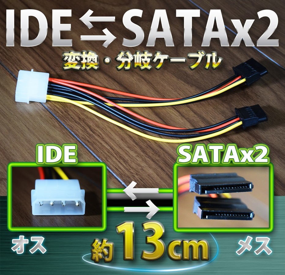 新品 ペリフェラル IDE (オス) ⇔ SATA 電源 (メス)x2 分岐ケーブル