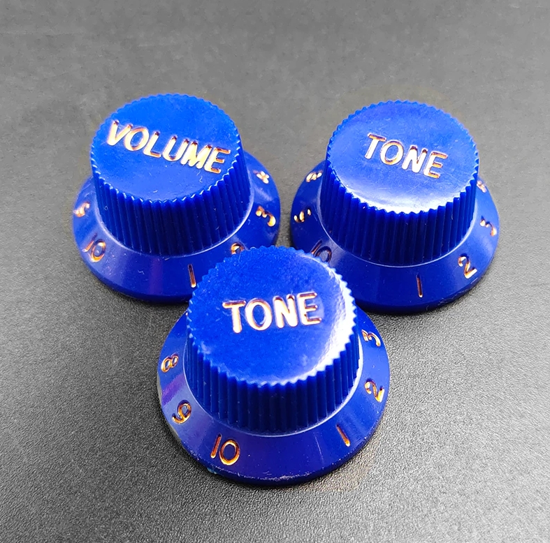 ストラトキャスター 【ブルー】3点セット エレキギター・ベース用 ボリューム トーン コントロールボタン