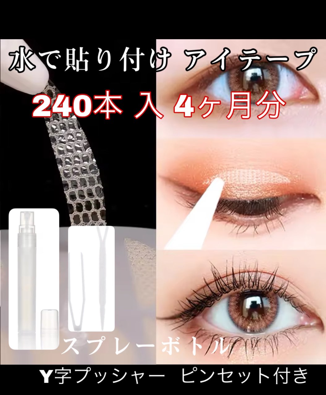 スプレーボトル付き 240本 メッシュ アイテープ 水で貼り付け 二重 アイプチ 整形 二重テープ 120回分 4か月分 プッシャー ピンセット 付き