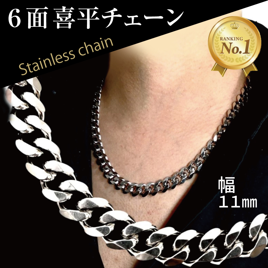 喜平 ネックレス チェーン メンズ 金属アレルギー対応 シルバー 6面カット 幅 11mm おしゃれ