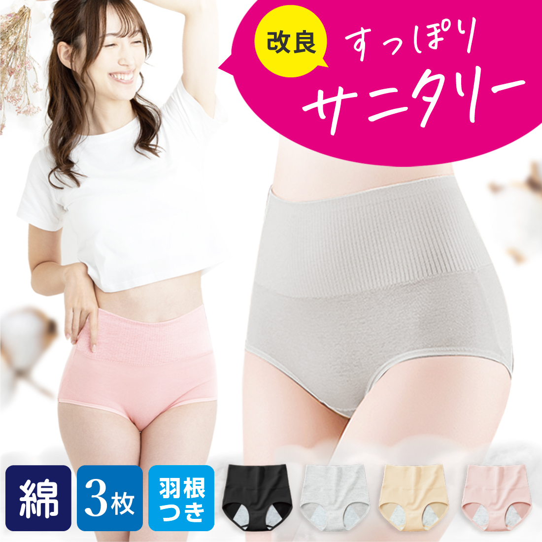 [3枚セット]綿 コットン リブ ハイウエスト ショーツ レディース サニタリー 桃尻 温活 下着 深め 深履き