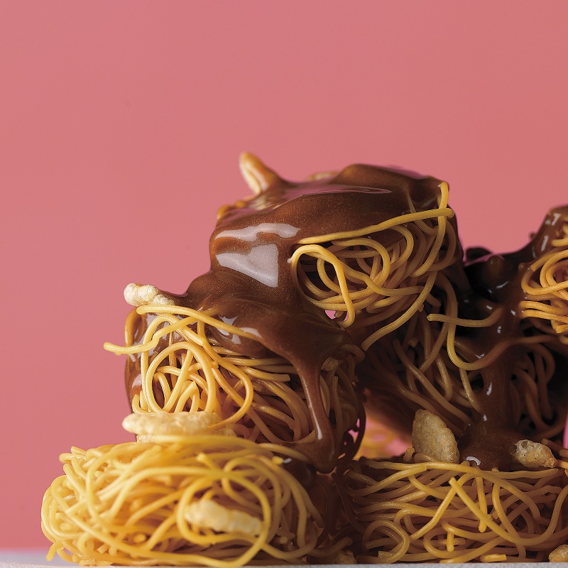 そんな方にぜひ「お菓子な」出会いで生まれたみろくやの「皿うどんチョコレート」をどうぞ| チョコレート×皿うどん | ホワイトチョコレート×皿うどん |