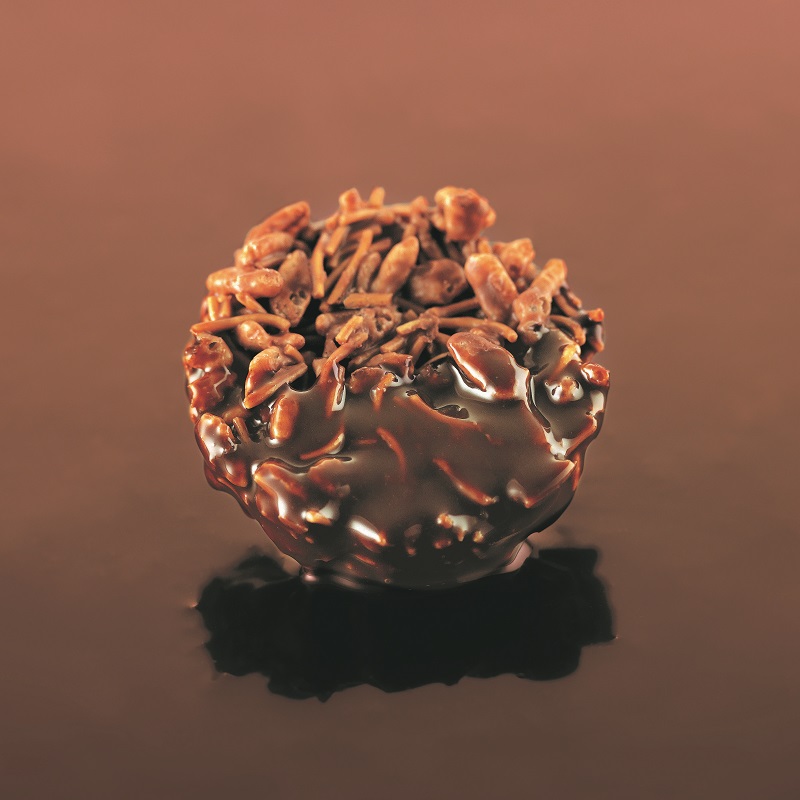パリパリの皿うどん麺が甘さ控えめのチョコレートと出会いました。 みろくや自慢のパリパリ揚麺とライスパフを上質なチョコレートでコーティング。