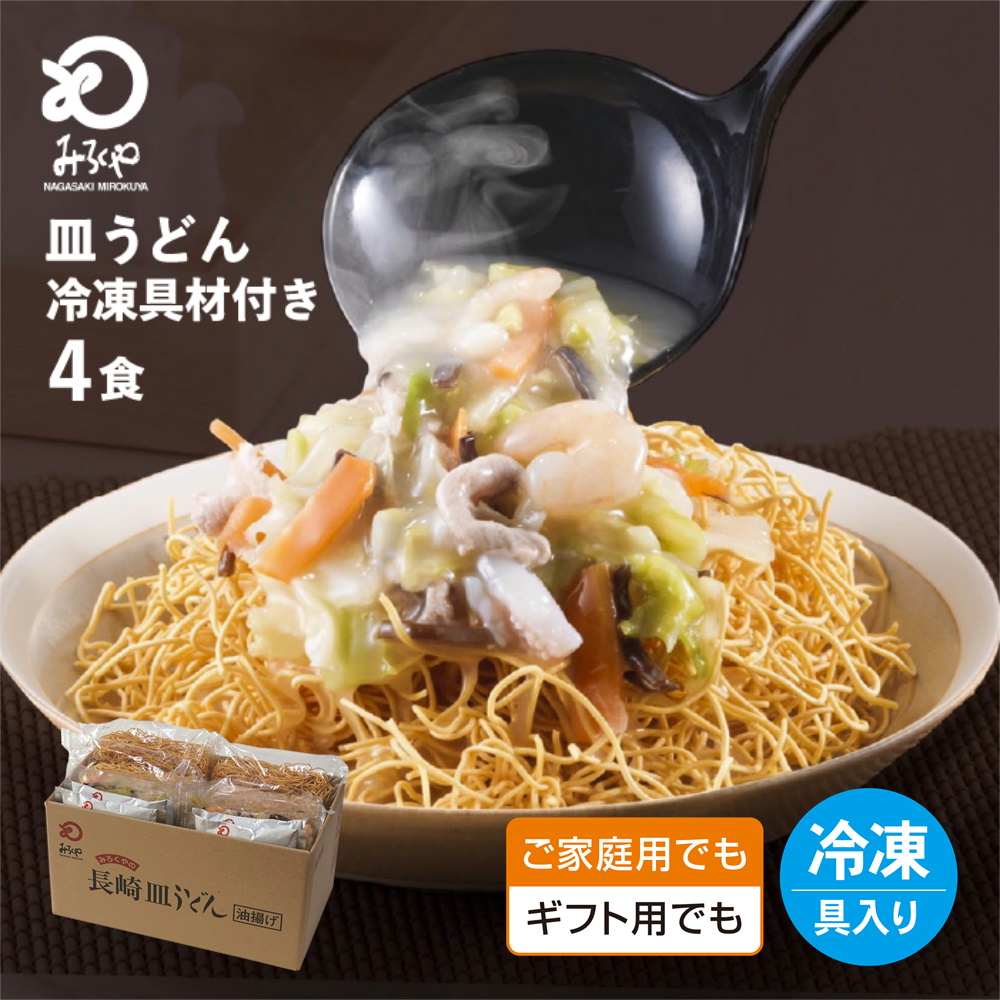 みろくや 冷凍皿うどん 具材付き(麺・スープ・具材セット)4食入り ご家庭用