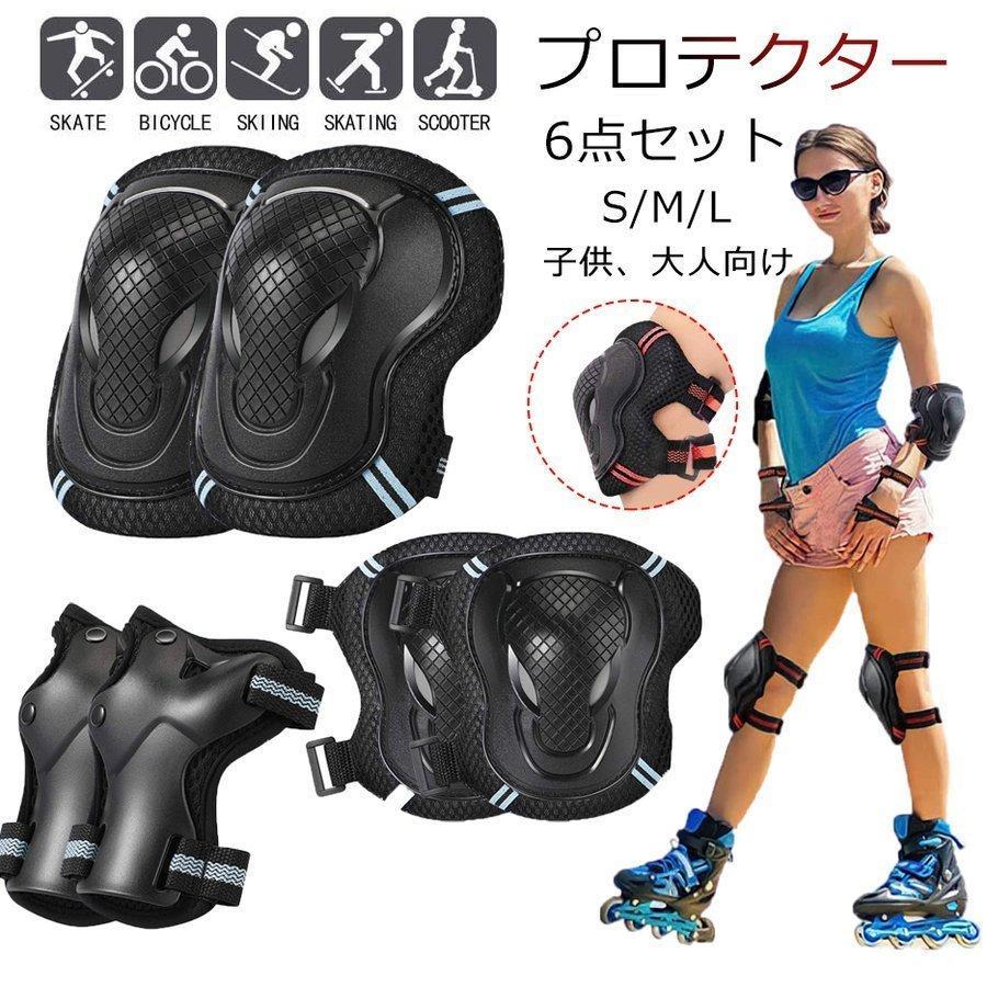 【大特価】キッズプロテクター 6点セット 大人用 子供用 バイク 子供保護パッド ボード インラインスケート ポーチ付き スケートボード用 手首 肘 膝