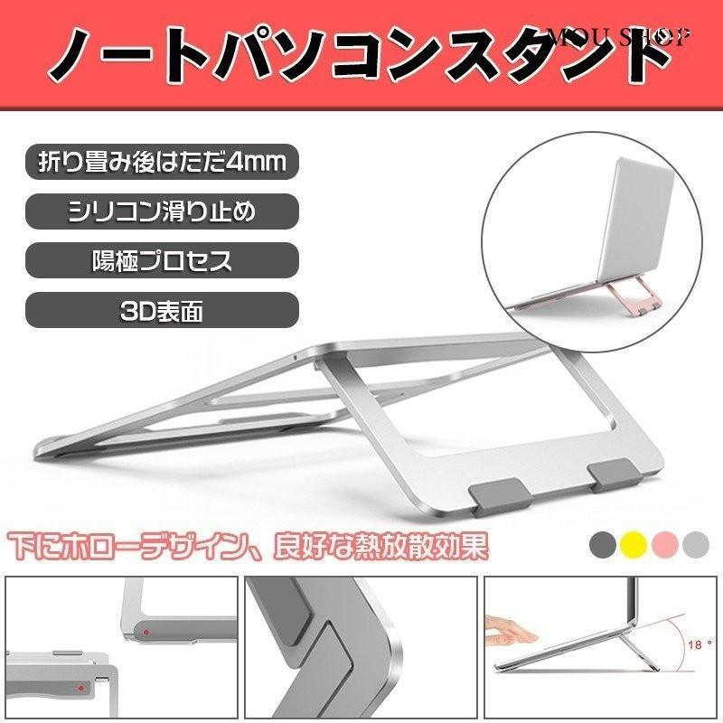 ノートパソコンスタンド アルミニウム製 軽量 持ちやすい ノートパソコン対応 折りたたみ式 パソコンスタンド パソコン台 人間工学設計 姿勢矯正 滑り止め