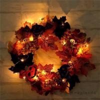 【期間限定】リース ハロウィン 花 秋 手作り LEDライト クリスマス 飾り付け フラワーリース 造花 ガーデニング 壁掛け飾り 玄関ドア 雑貨 装飾 ギフト