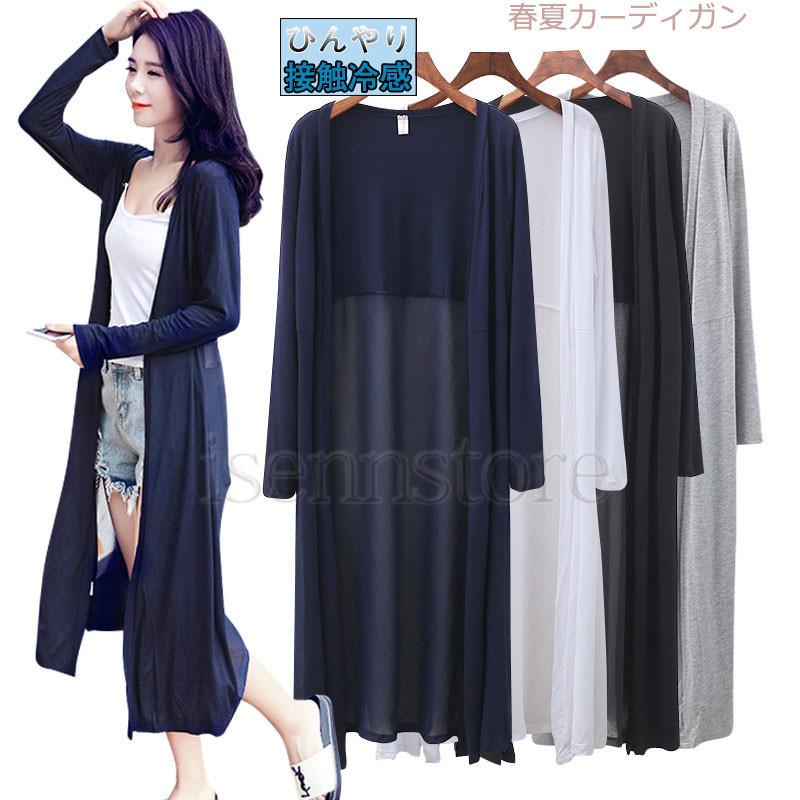 【特価】レディース UVカット 長袖 ロングカーディ 大きいサイズ 春夏 シンプル カーディガン ナチュラル 無地 薄手 サマー カーディガン 羽織り