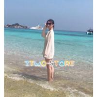ビーチ カバーアップ ラッシュガード Tシャツ レディース ス 水着 長袖 体型カバー プルオーバー ゆったり オーバーサイズ ビッグシルエット 大きめ お尻カバー お腹カバー 露出少なめ 日焼け防止 白 夏 海 シースルー シアー 肌見せ シンプル リゾート 20代 30代 40代 ホワイト