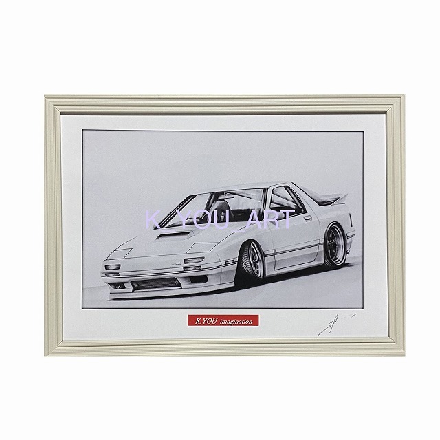 マツダ MAZDA FC サバンナ RX-7 【鉛筆画】名車 旧車 イラスト A4サイズ 額付き サイン入り