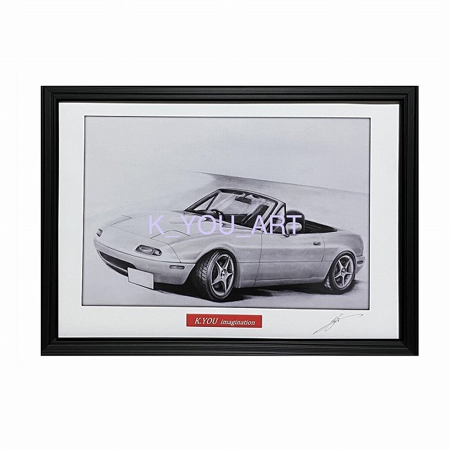 マツダ MAZDA ユーノスロードスター 【鉛筆画】名車 旧車 イラスト A4サイズ 額付き サイン入り
