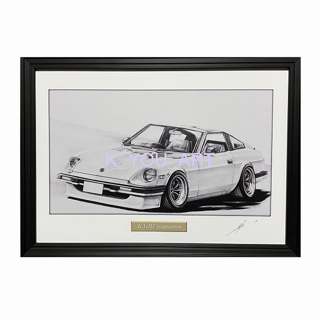 日産 NISSAN フェアレディ 130Z【鉛筆画】名車 旧車 イラスト A4サイズ 額付き サイン入り