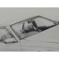 こんなところまで?と言うくらいグリルなど細かいパーツやエンブレムなども、とても鉛筆で描かれているとは思えないくらい繊細なタッチです。