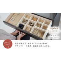 【機能・設備】LEDライト、スイッチ付きコンセント、底板ラシャ貼り引き出し、宝石箱、ネックレス掛け