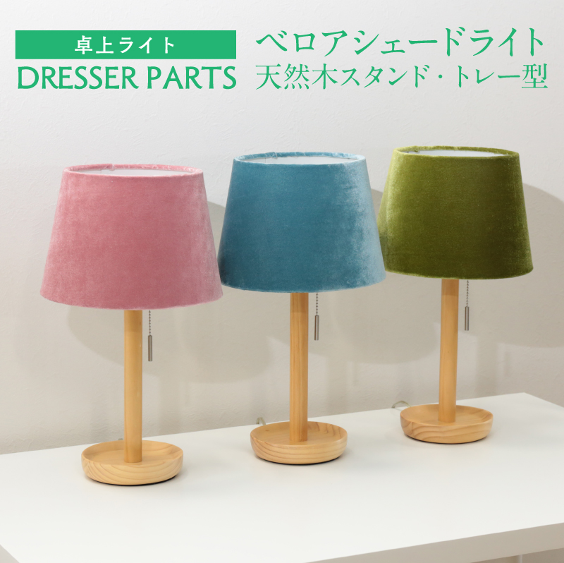 ベロアシェードを使用した北欧風プルスイッチタイプのテーブルランプ