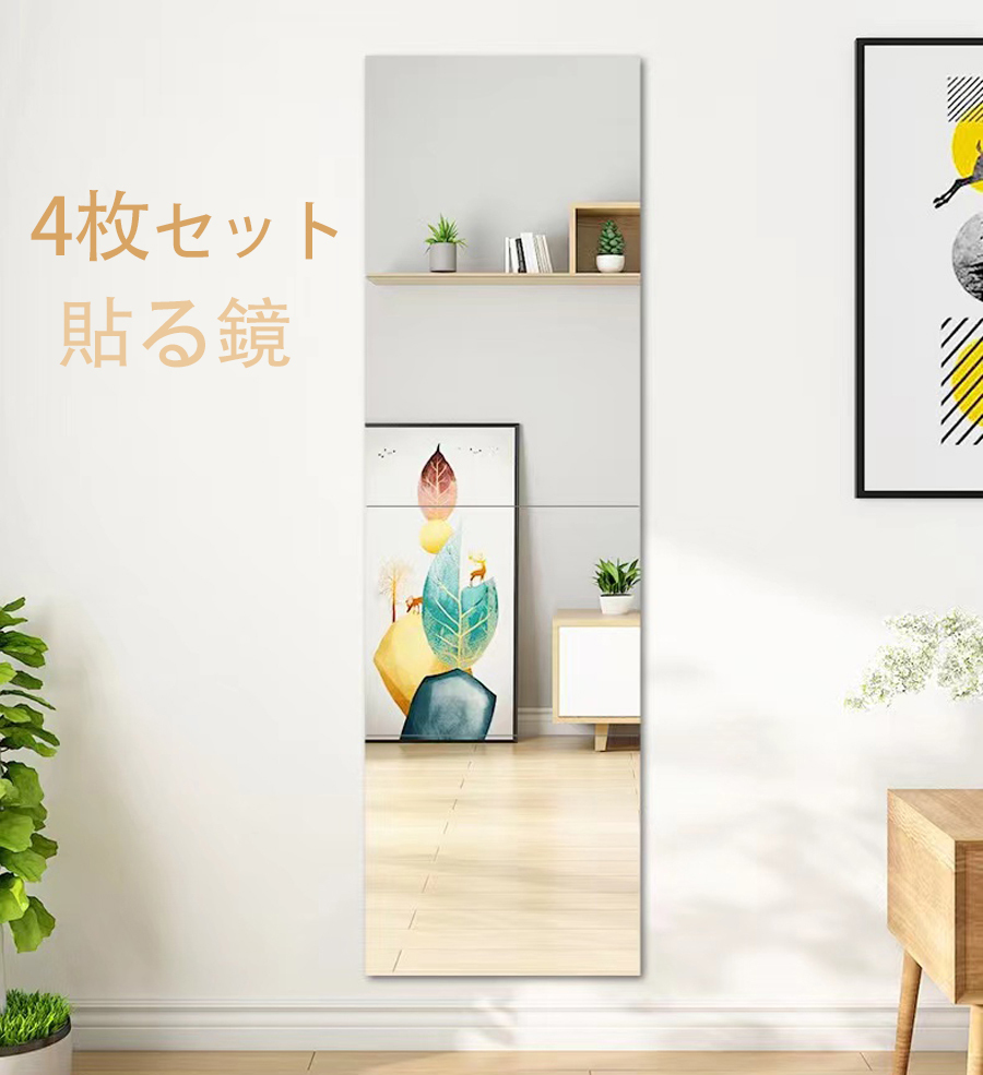 貼る鏡 全身 ウォールミラー 全身鏡 4枚セット 22x22cm 薄型 壁掛け ミラー おしゃれ シール ノンフレーム 自由組合鏡 貼付けタイプ シンプル 人気