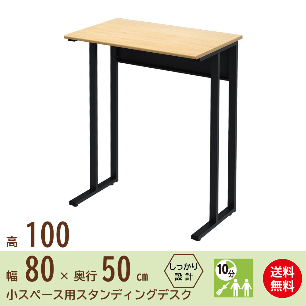 家具のAKIRA スタンディングデスク オフィスデスク パソコンデスク 事務机 幅 80cm 奥行 50cm 高さ 100cm ナチュラル ブラック NWDH-0850-NABK