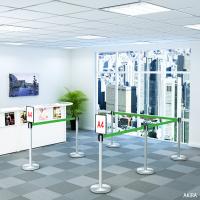 ベルトにロゴや案内用の文字などを入れれば、企業・ブランド名を覚えてもらえたり、行列整理がスムーズに行えるのではないでしょうか。AKIRAのベルトパーテーションは20本以上のご注文で、ベルト部分への文字・ロゴ印刷もお受けしております。納期は1ヶ月程です。