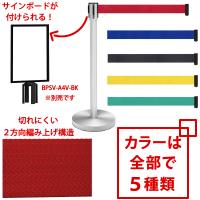 お客様にお並び頂く際、サインボードだけでなくベルト自身の色でもご案内ができるように、赤・青・黒・黄・緑の5色のベルトをご用意しました。ベルトはポリエステル樹脂と言うナイロンロープに多く使われる材料を使用し、さらに2方向編み上げ構造によってより強度を増しています。