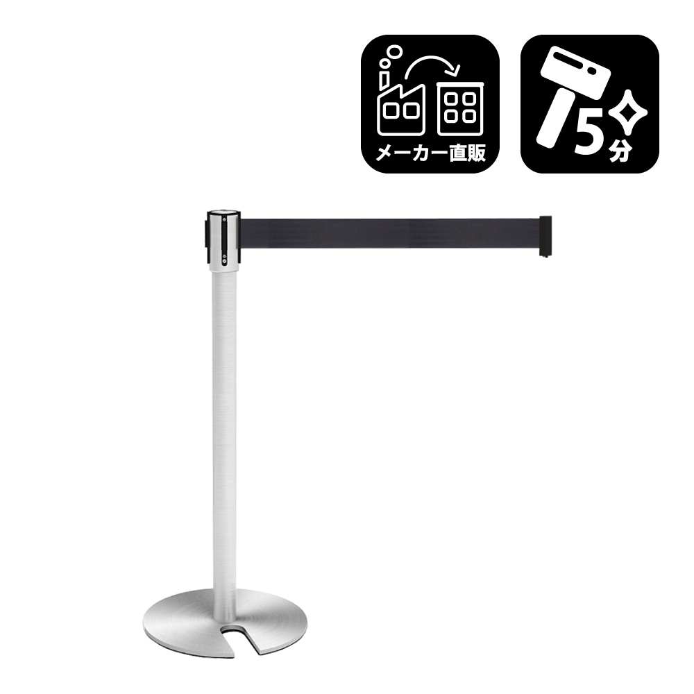 有名なお店やお昼時などでお客様が集中する場合、お並び頂いた順番を重視する必要があります。このような場面でお客様に整列していただくために用意されているものがベルトパーテーションです。使わないときはベルトを収めて、使用時にベルトを引出し簡易な仕切りを作ることができます。ベルトパーテーションは低すぎても高すぎても意味を成しませんので、標準的な高さの89cmになるように設計しました。