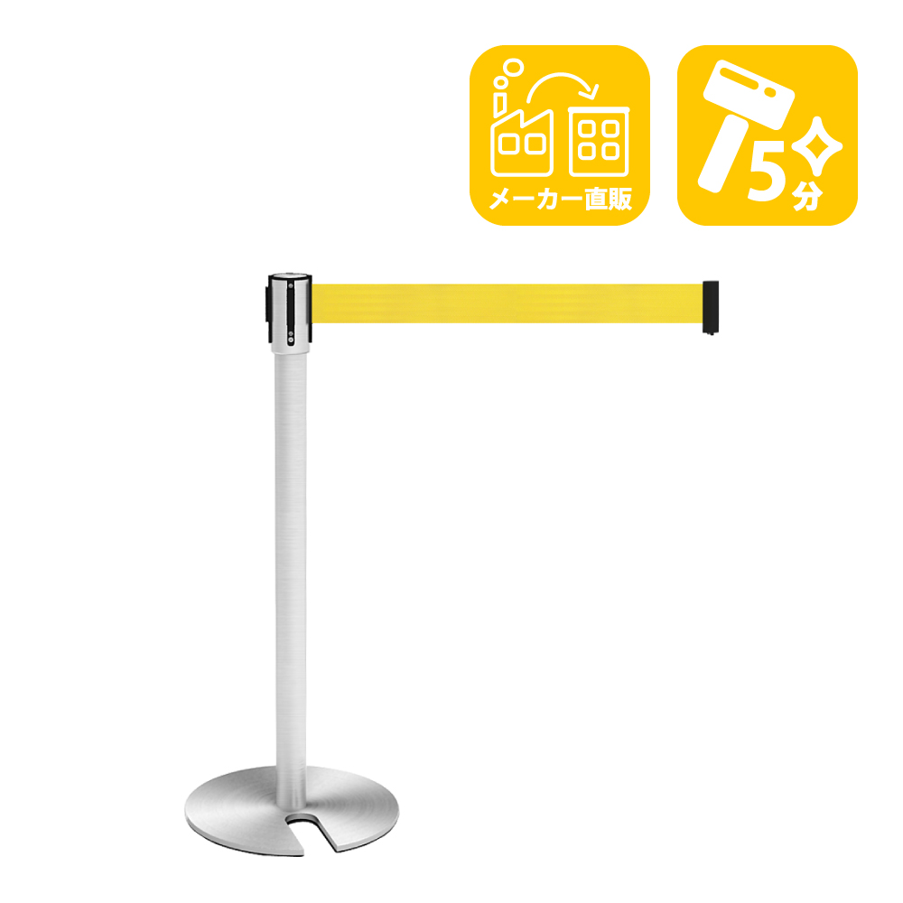 有名なお店やお昼時などでお客様が集中する場合、お並び頂いた順番を重視する必要があります。このような場面でお客様に整列していただくために用意されているものがベルトパーテーションです。使わないときはベルトを収めて、使用時にベルトを引出し簡易な仕切りを作ることができます。ベルトパーテーションは低すぎても高すぎても意味を成しませんので、標準的な高さの89cmになるように設計しました。