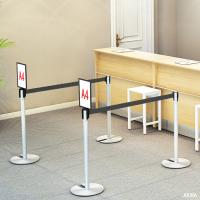 有名なお店やお昼時などでお客様が集中する場合、お並び頂いた順番を重視する必要があります。このような場面でお客様に整列していただくために用意されているものがベルトパーテーションです。使わないときはベルトを収めて、使用時にベルトを引出し簡易な仕切りを作ることができます。ベルトパーテーションは低すぎても高すぎても意味を成しませんので、標準的な高さの89cmになるように設計しました。