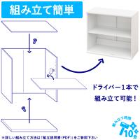 組み立て時間は約10分!背面板と側板が一体化しているため、天板・底板・棚板・扉を取り付けるだけで完成します。作業工程が少なく、男女問わず、組み立てに慣れていない方でもスムーズに作業可能。お手軽にお使いいただけます。