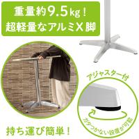 | 構造材 | ベース : アルミ ダイキャスト 支柱 : アルミ □60mm 1.5mm厚 天板受け : アルミ ダイキャスト |