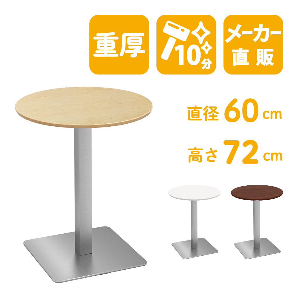 カフェ用、オフィスの休憩室用、ご自宅用などなど・・・様々な場面でお使いいただける、シンプルなデザインのカフェテーブルです。丸天板・四角天板からお選びいただける他、ホワイト、ナチュラル、ダークブラウンの3カラー、さらに、幅60cm、幅75cmの2サイズをご用意しております。