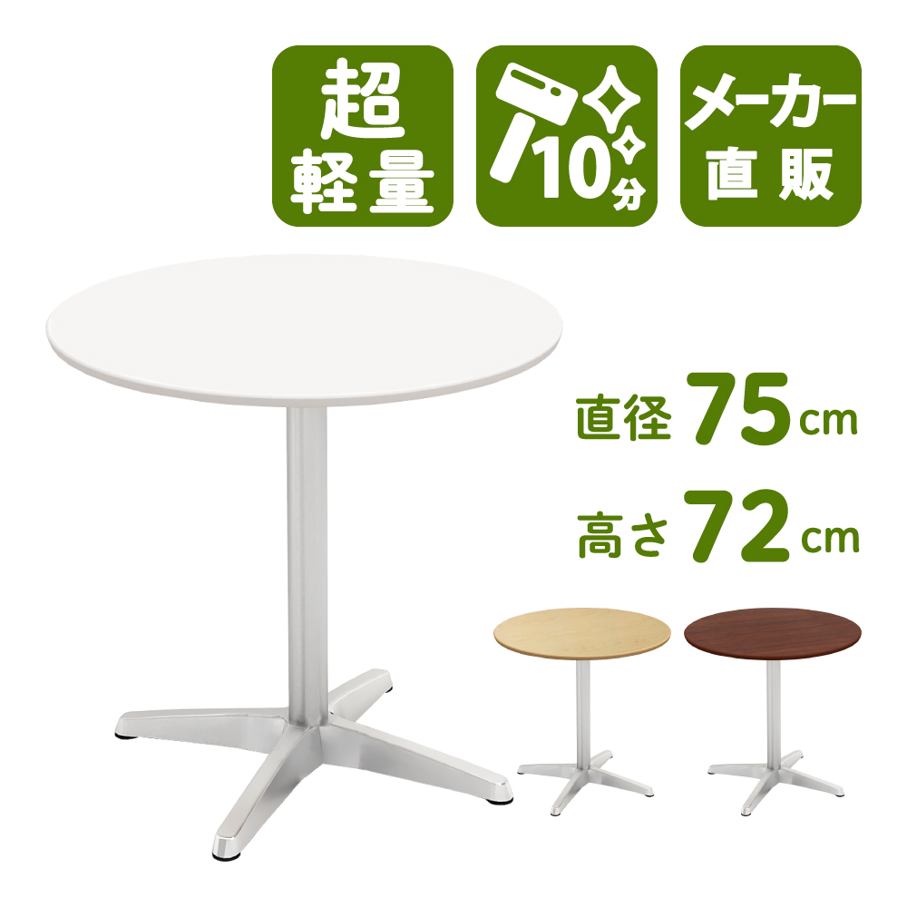 カフェ用、オフィスの休憩室用、ご自宅用などなど・・・様々な場面でお使いいただける、シンプルなデザインのカフェテーブルです。丸天板・四角天板からお選びいただける他、ホワイト、ナチュラル、ダークブラウンの3カラー、さらに、幅60cm、幅75cmの2サイズをご用意しております。