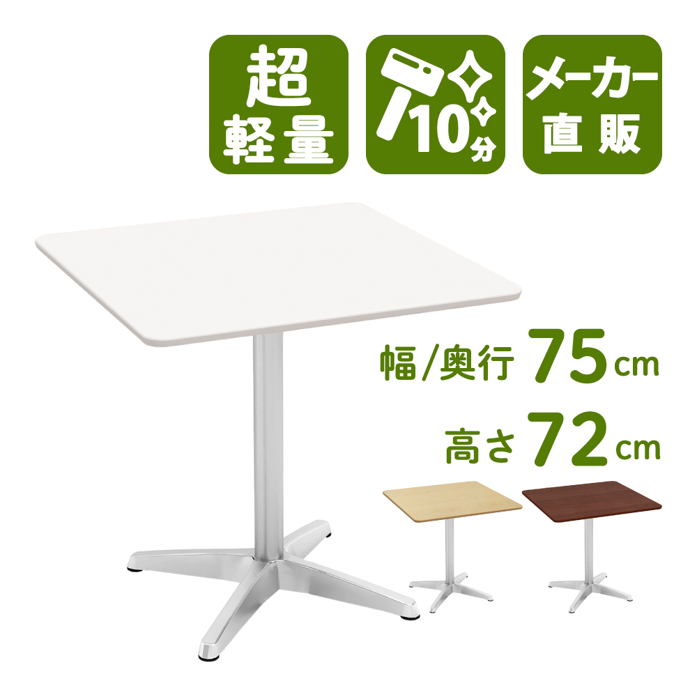 カフェ用、オフィスの休憩室用、ご自宅用などなど・・・様々な場面でお使いいただける、シンプルなデザインのカフェテーブルです。丸天板・四角天板からお選びいただける他、ホワイト、ナチュラル、ダークブラウンの3カラー、さらに、幅60cm、幅75cmの2サイズをご用意しております。
