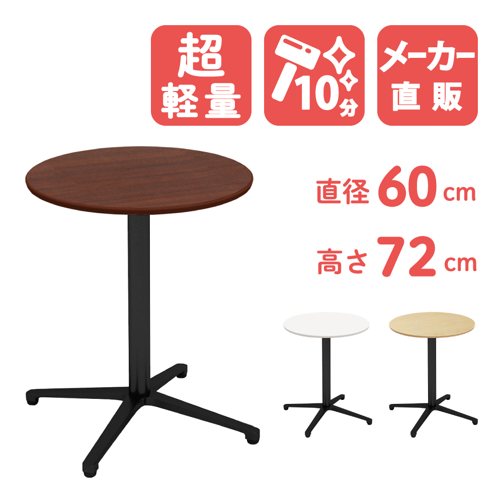 カフェ用、オフィスの休憩室用、ご自宅用などなど・・・様々な場面でお使いいただける、シンプルなデザインのカフェテーブルです。丸天板・四角天板からお選びいただける他、ホワイト、ナチュラル、ダークブラウンの3カラー、さらに、幅60cm、幅75cmの2サイズをご用意しております。