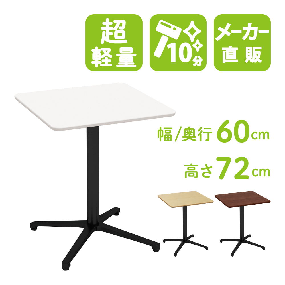 カフェ用、オフィスの休憩室用、ご自宅用などなど・・・様々な場面でお使いいただける、シンプルなデザインのカフェテーブルです。丸天板・四角天板からお選びいただける他、ホワイト、ナチュラル、ダークブラウンの3カラー、さらに、幅60cm、幅75cmの2サイズをご用意しております。