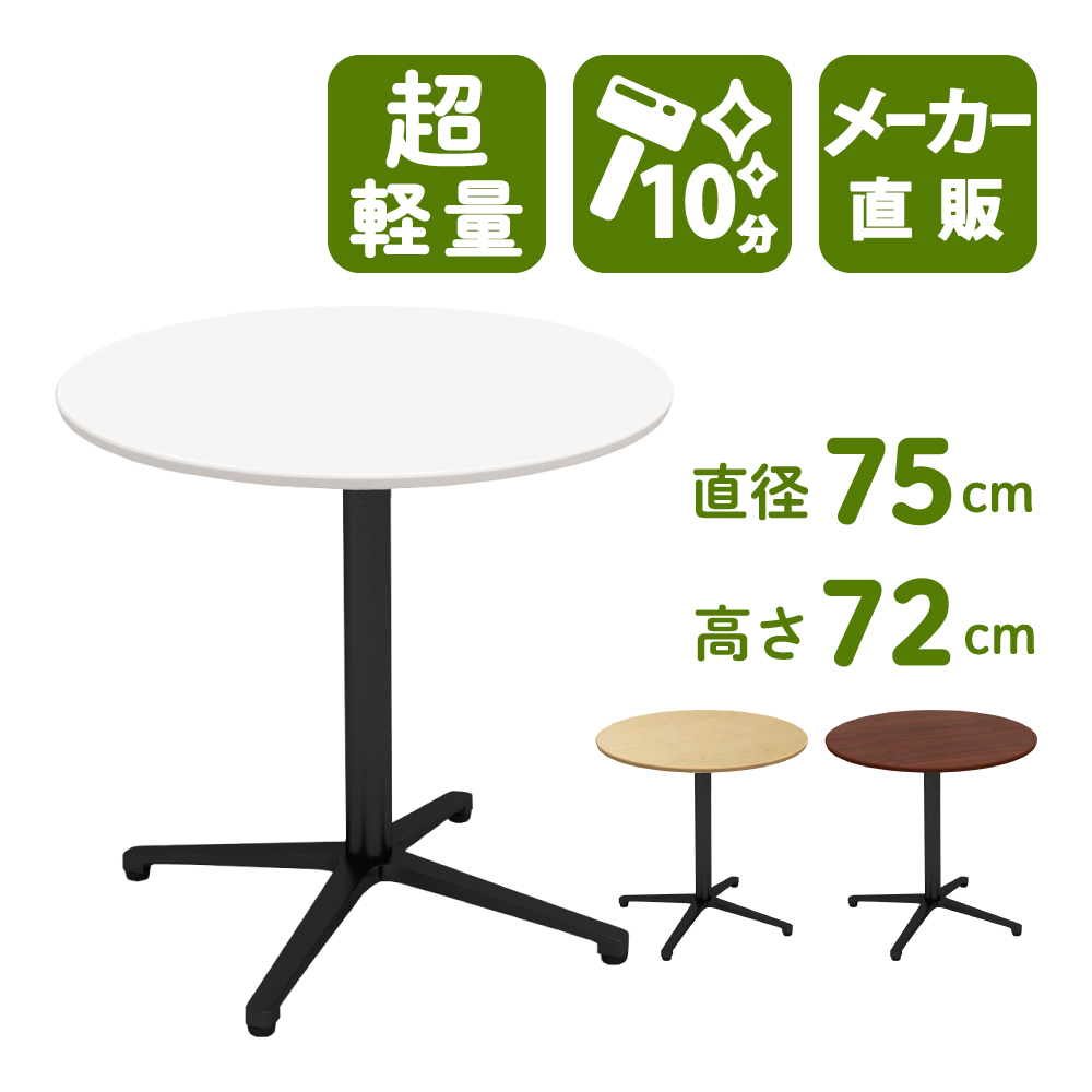 カフェ用、オフィスの休憩室用、ご自宅用などなど・・・様々な場面でお使いいただける、シンプルなデザインのカフェテーブルです。丸天板・四角天板からお選びいただける他、ホワイト、ナチュラル、ダークブラウンの3カラー、さらに、幅60cm、幅75cmの2サイズをご用意しております。