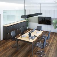 またデスクの脚はグレーのカラーリングで、オフィスにふさわしい落ち着きのある雰囲気に仕上げました。