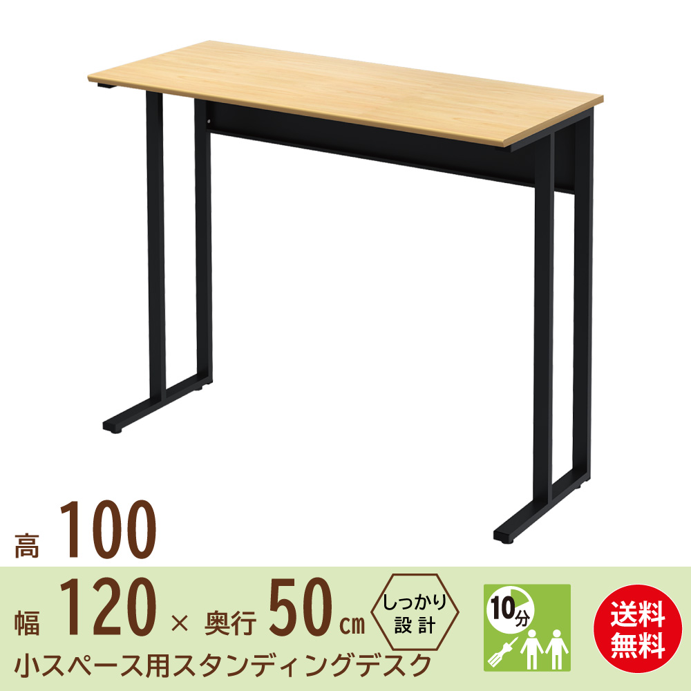 家具のAKIRA スタンディングデスク オフィスデスク パソコンデスク 事務机 幅 120cm 奥行 50cm 高さ 100cm ナチュラル ブラック NWDH-1250-NABK