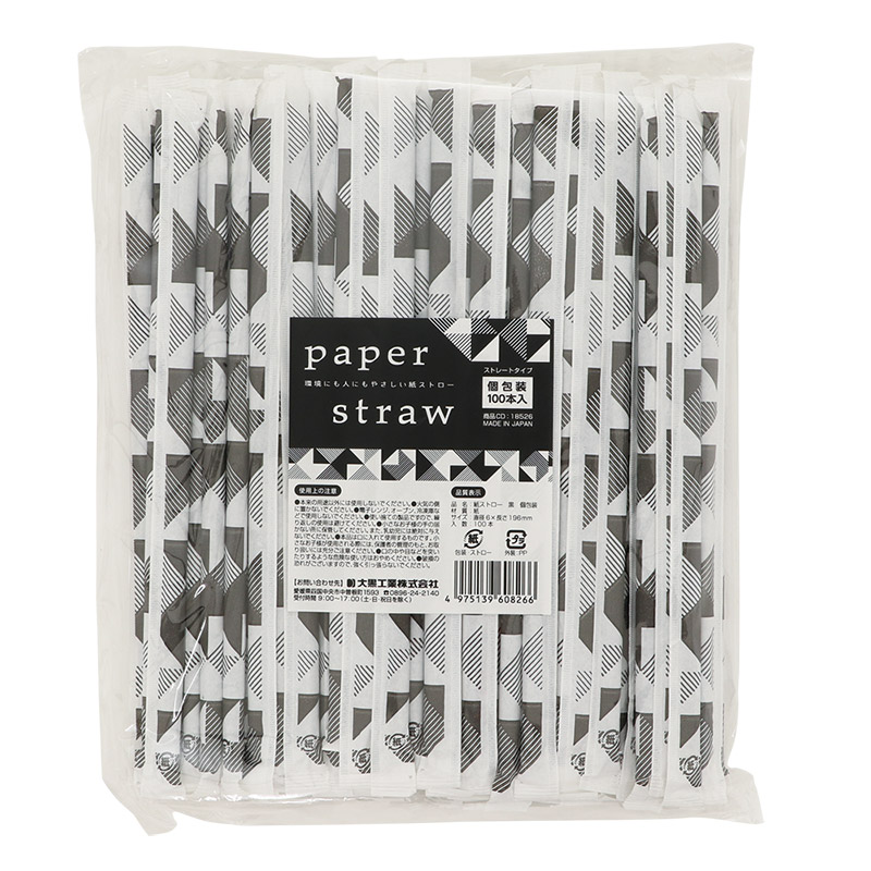 紙ストロー 6×196mm ストレート 黒 個包装 100本入