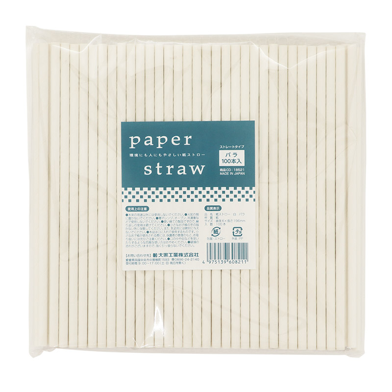 紙ストロー 6×196mm ストレート 白 バラ 100本入