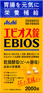 | 商品詳細 | ビ−ル酵母には、乳酸菌などの腸の働きに役立つ菌を増やしたり、食欲を増進させる作用があります。天然素材のビ−ル酵母から生まれた「エビオス錠」は、弱った胃を助け、消化不良・食欲不振など、胃の働きが不十分なために引き起こされる症状を改善します。 ビ−ル酵母には、ビタミンB1・B2・B6などのビタミンB群、たんぱく質、ミネラルといった栄養素の他に、グルカン、マンナンという食物繊維、さらに核酸などが豊富に含まれています。天然素材のビ−ル酵母から生まれた「エビオス錠」は、これらの成分の相互作用で不足しがちな栄養素を補います。 ビ−ル酵母には、たんぱく質を構成するアミノ酸のうち、体内ではつくれない必須アミノ酸9種類すべてが含まれています。天然素材のビ−ル酵母から生まれた「エビオス錠」は、たんぱく質を豊富(40〜50%)に含み、胃腸の健康に役立ちます。 |