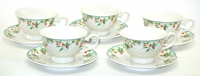 ◆お値打ち商品◆ストロベリーハーブ ティーコーヒーカップソーサー5客セット 5客碗皿セット 日本製 高台兼用碗 専用箱付 お値打ち 安い 5客コーヒーカップ