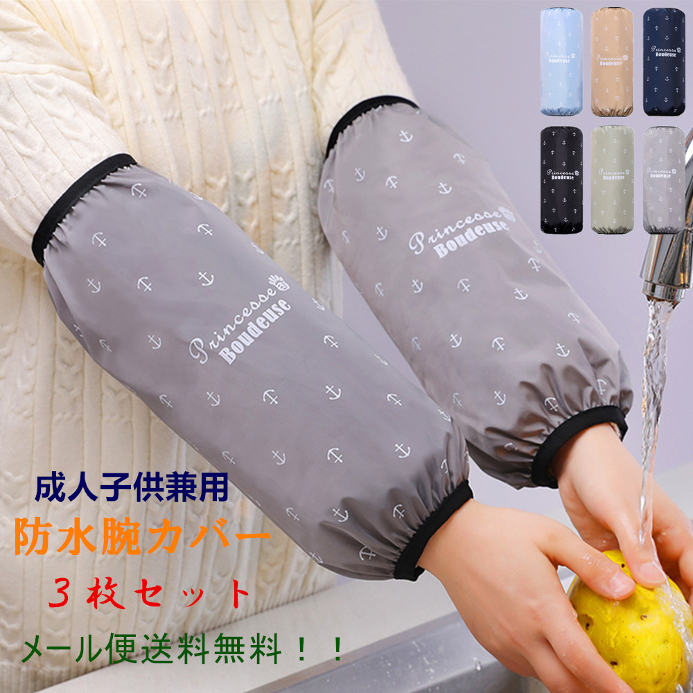 腕カバー 3点セット 袖カバー アームカバー 成人 子供 兼用 防水 作業用 水仕事 キッチン お絵かき用 園芸 事務用 洗い替え