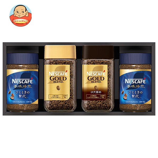 | 原材料 | コーヒー豆(輸入) | | 栄養成分 | | | 内容 | ネスカフェ ゴールドブレンド(80g瓶×1個)、ネスカフェ コク深め(80g瓶×1個)、ネスカフェ 香味焙煎 ひとときの贅沢(65g瓶×2個) | | 賞味期間 | 【ゴールドブレンド】 (メーカー製造日より)24ヶ月 【コク深め】 (メーカー製造日より)24ヶ月 【香味焙煎 ひとときの贅沢】 (メーカー製造日より)12ヶ月 | | 名称 | レギュラーソリュブルコーヒー | | 保存方法 | 低温・乾燥した場所に保存してください。 | | 備考 | 製造者:ネスレ日本株式会社 神戸市中央区御幸通7-1-15 |