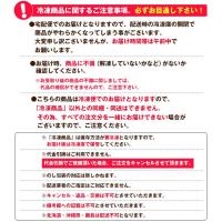 ※【冷凍商品】は保存方法が要冷凍となりますので、お届け後は冷凍庫で保管して下さい。 ※代金引き換えはご利用できません。 (代金引換でご登録頂いた場合、ご注文をキャンセルさせて頂きます。) ※のし包装の対応は致しかねます。 ※配送業者のご指定はご対応できません。 ※キャンセル・返品・交換は不可とさせていただきます。 ※備考欄への記載は不可とさせていただきます。 ※北海道・沖縄県・離島への配送は不可となります。